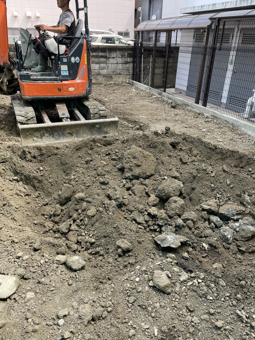 基礎を作る為に地盤を掘削しています。