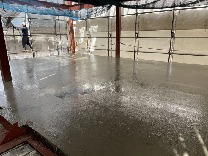 デッキコンクリート打設工事を行いました。