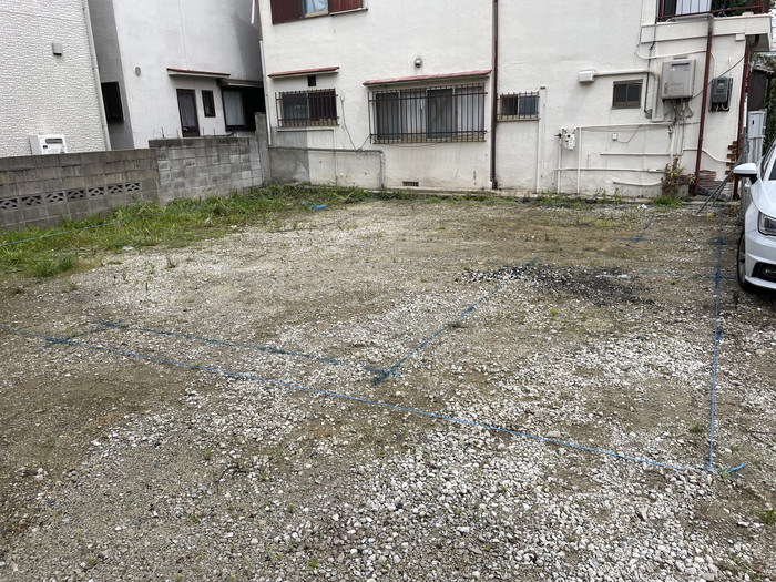 「地縄張り」とは遣方(やりかた)時に、縄やロープなどを用い、建物をはじめ外周や基礎などの位置を地面に示すことです。