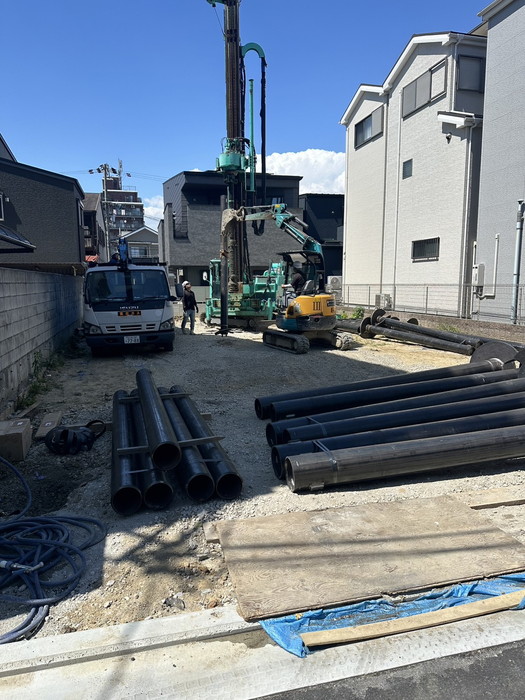 敷地面積19.98坪、延床面積29.89坪の3階建て住宅の工事が始まりました。