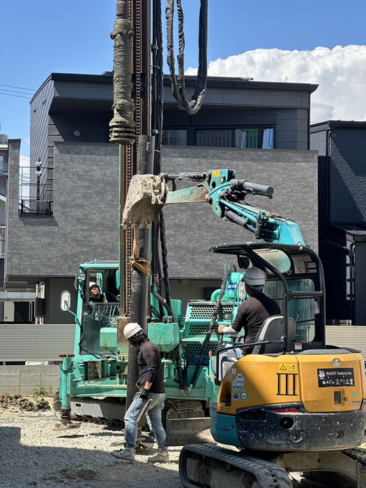 基礎工事がスタートしました。基礎を作る為に地盤を掘削しています。