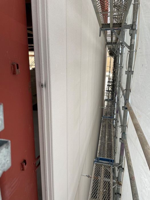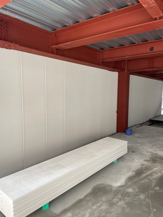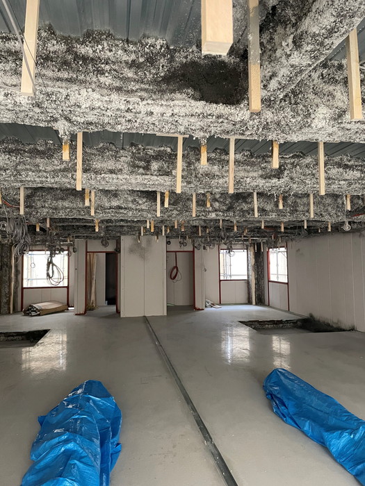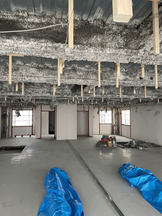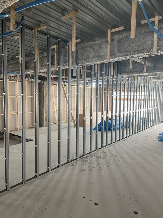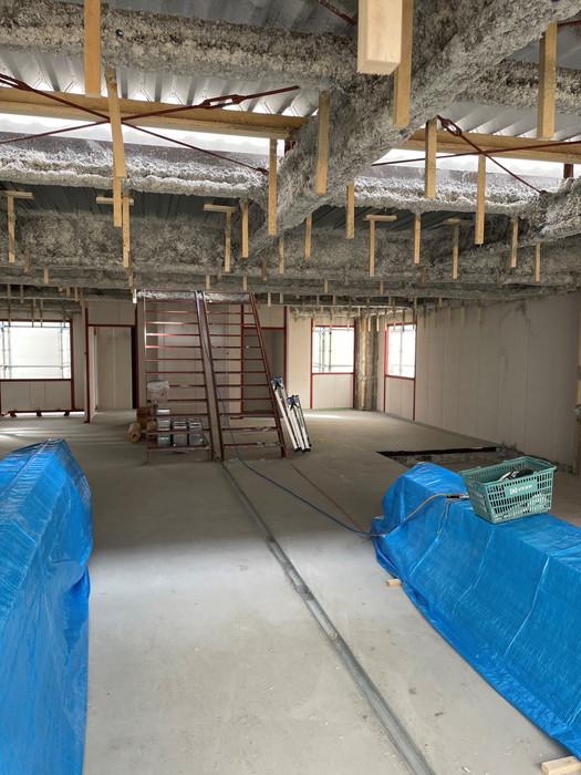 ・内部の造作工事に入りました。2F床に100mm厚のALCコンクリートを敷いていきます。