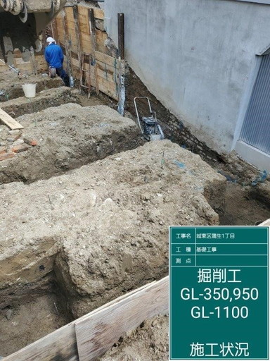 基礎工事がスタートしました。基礎を作る為に地盤を掘削しています。