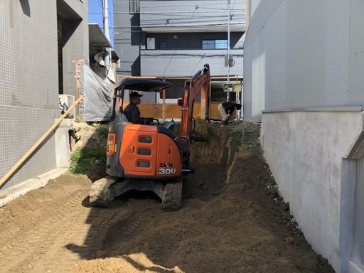 敷地面積14.77坪、延床面積42.83坪の4階建てビルの建築が始まりました。