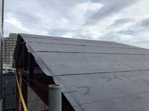 ・屋根の下地の上にアスファルトルーフィングを貼りました。