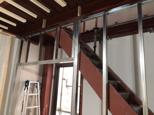 鉄骨を慎重にクレーンで吊り上げ、ハイテンションボルトでしっかりと締めつけます。