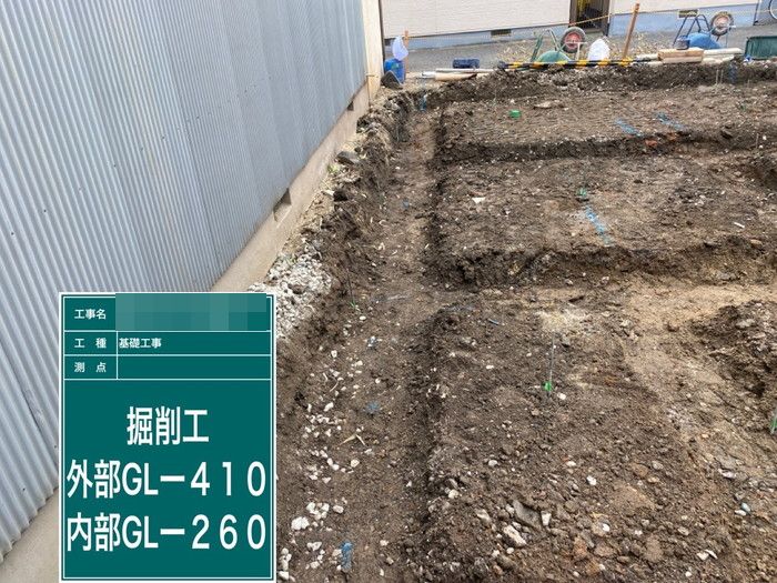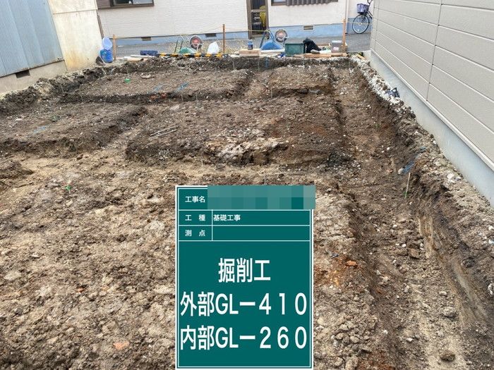 基礎工事がスタートしました。基礎を作る為に地盤を掘削しています。