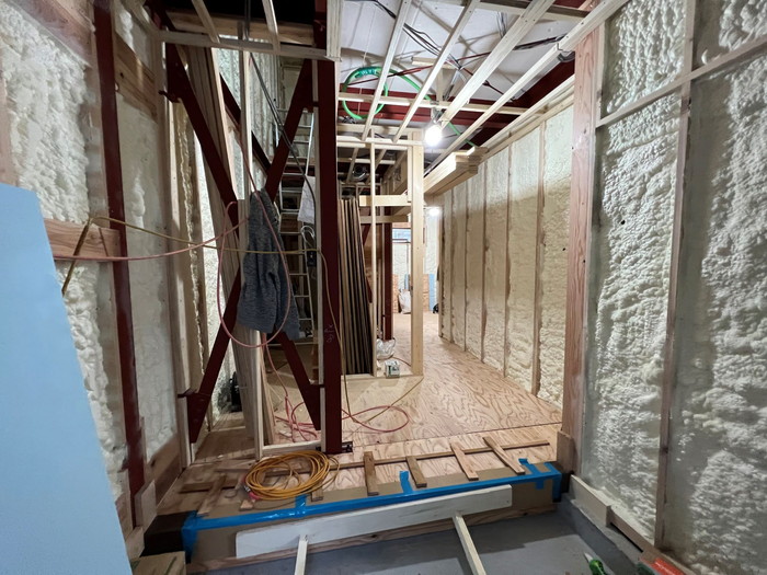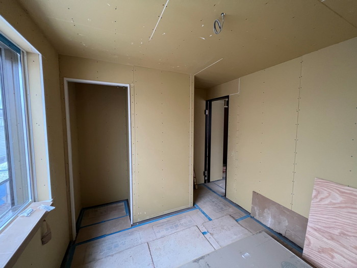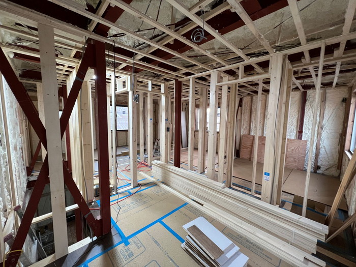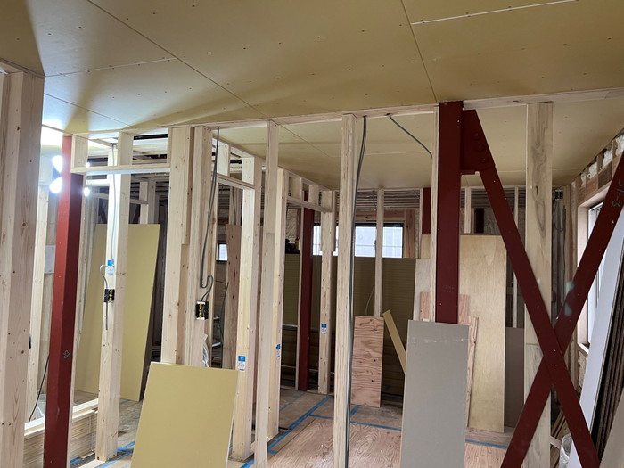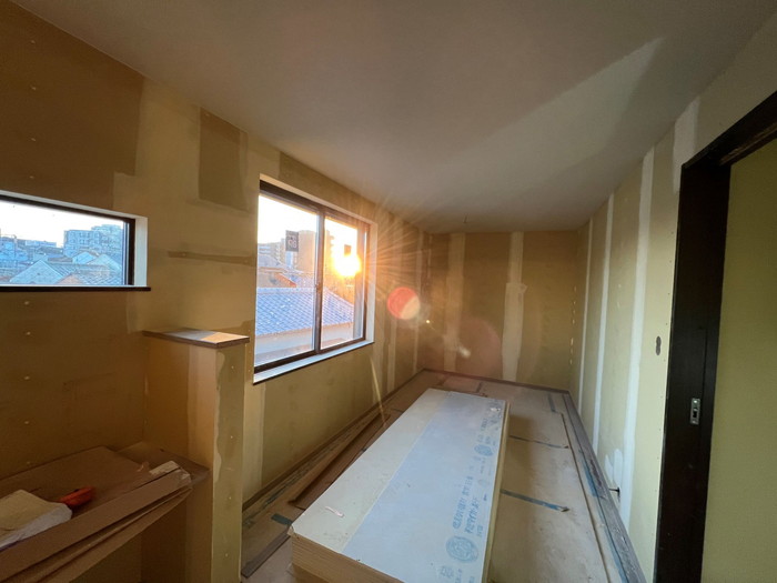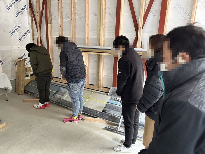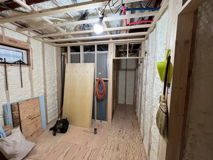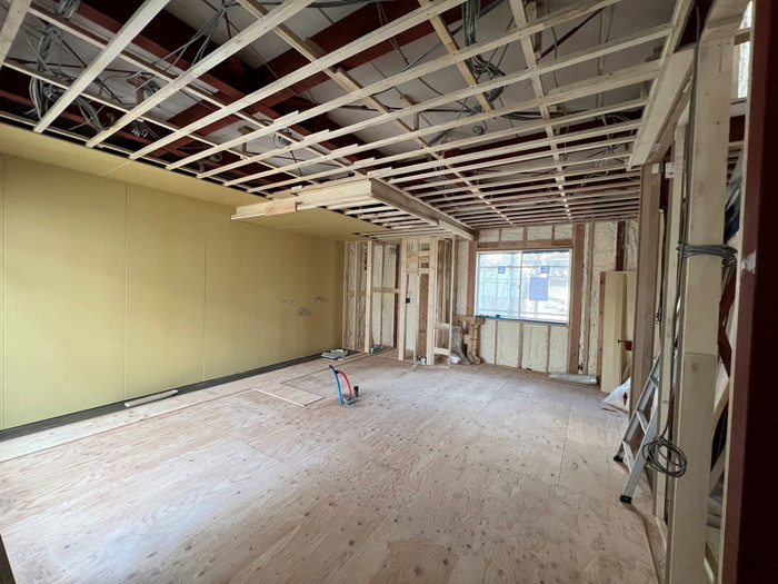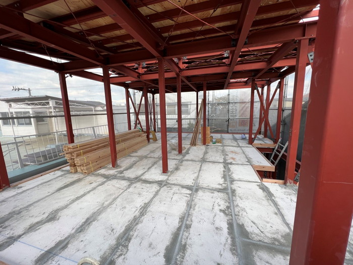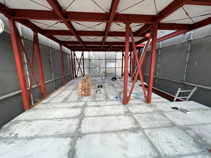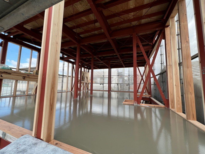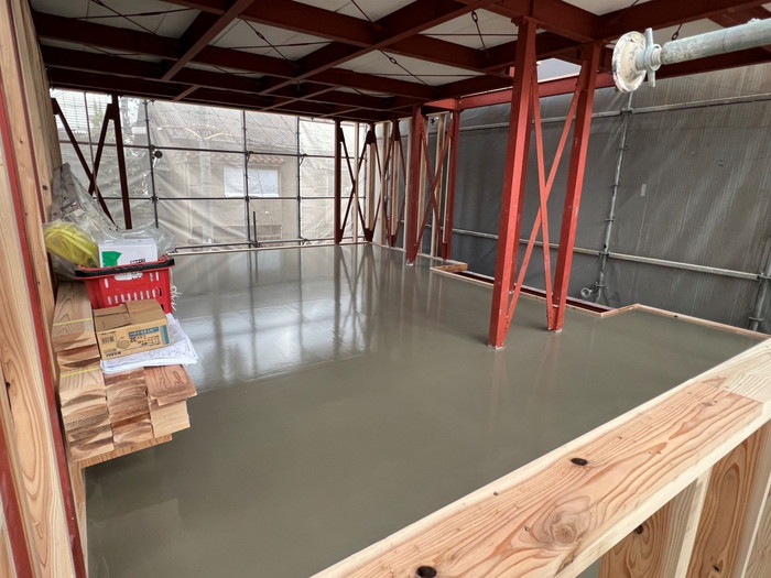 ・内部の造作工事に入りました。床にALCコンクリートを敷いていきます。