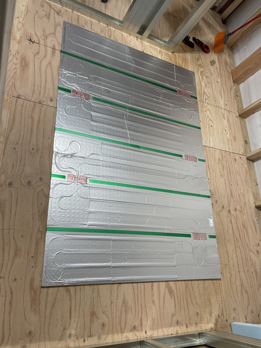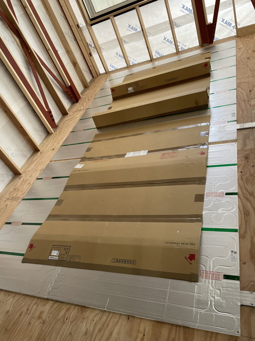 フローリング貼り・床暖マット施工を行いました。