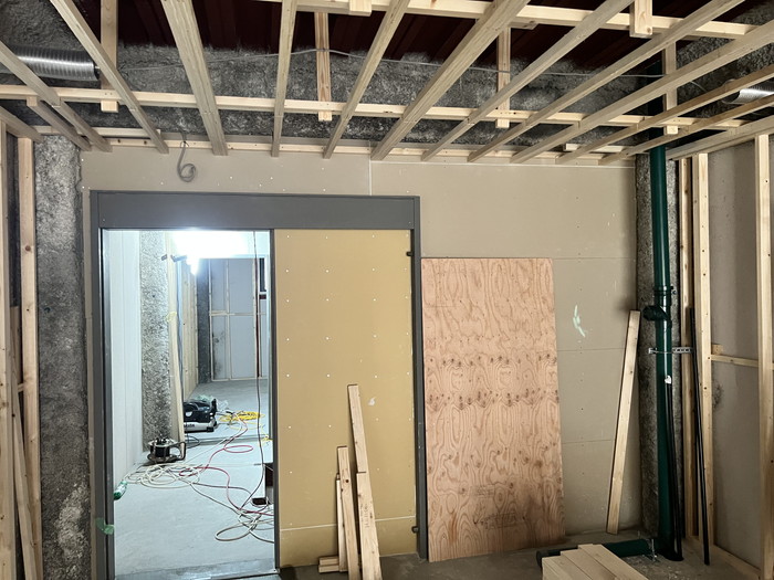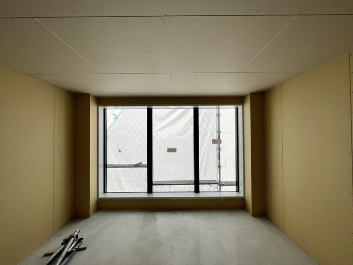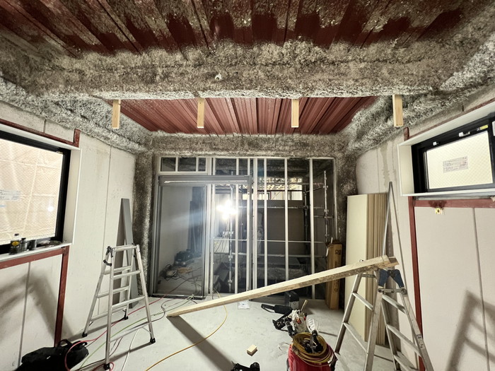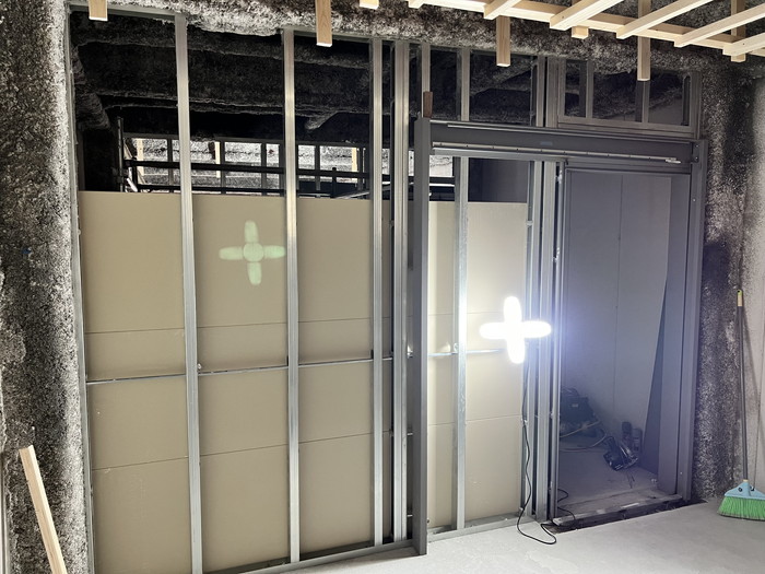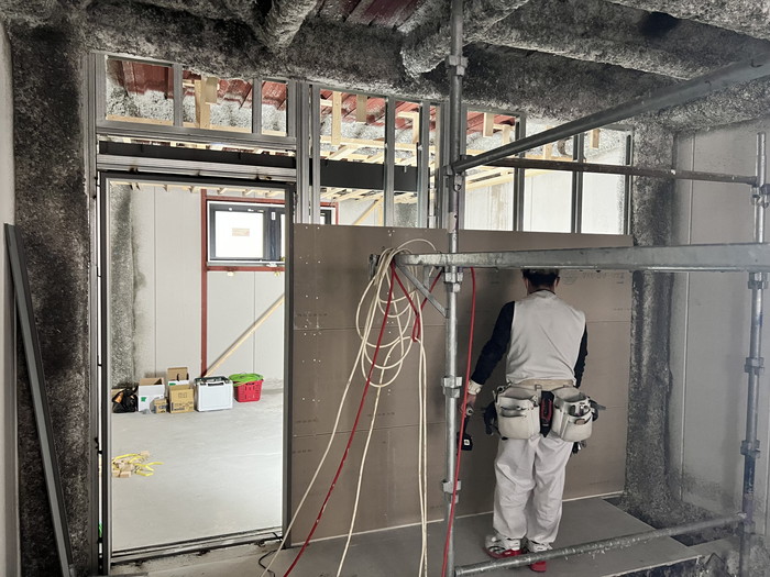 ボードを貼り終えたら、クロスを貼る前にパテ処理をします。