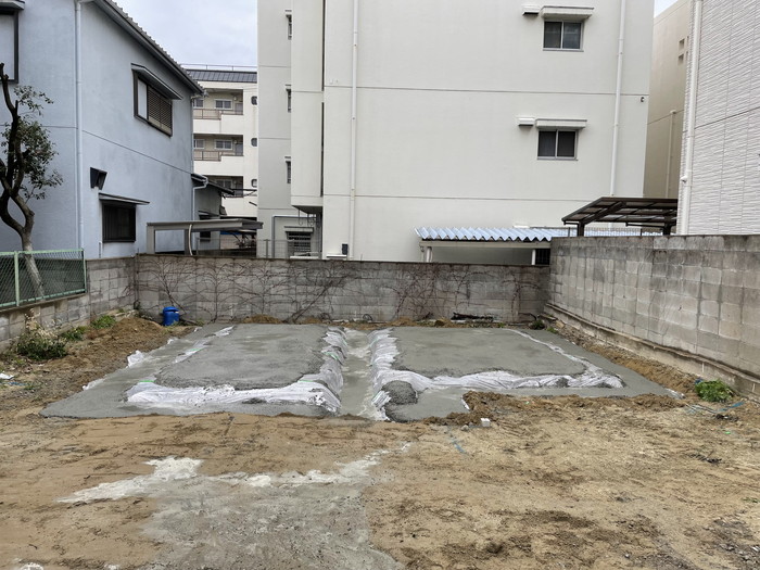 敷地面積29.48坪、延床面積34.06坪の3階建て住宅の建築が始まりました。