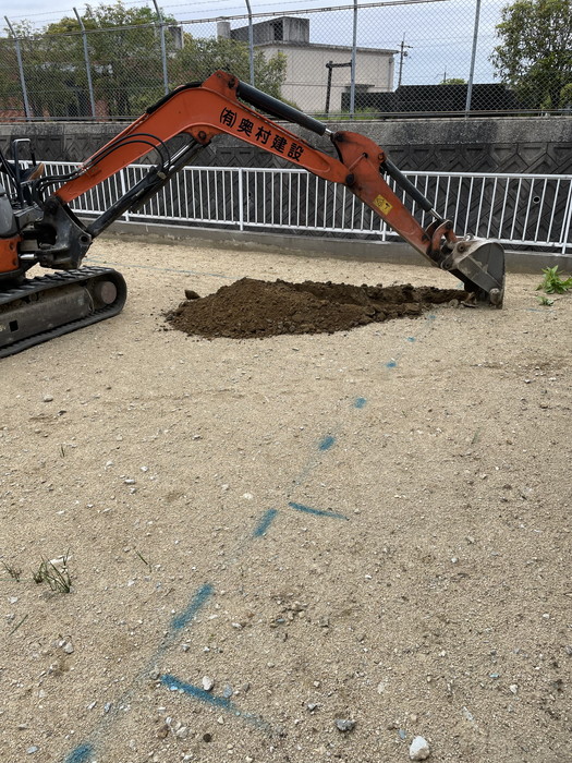 基礎工事がスタートしました。基礎を作る為に地盤を掘削しています。
