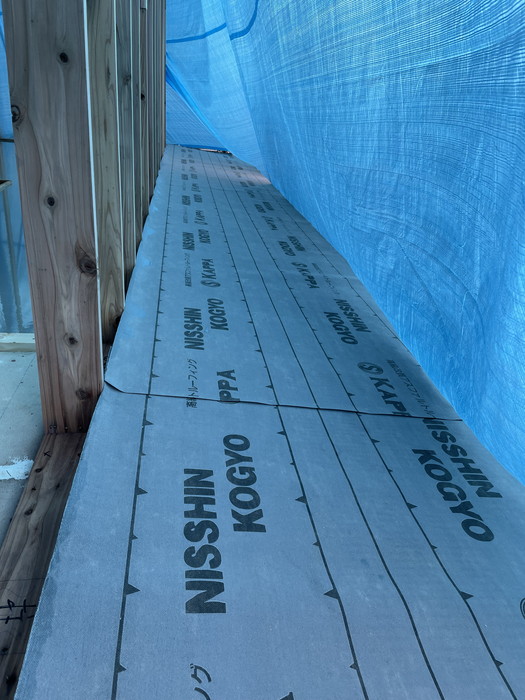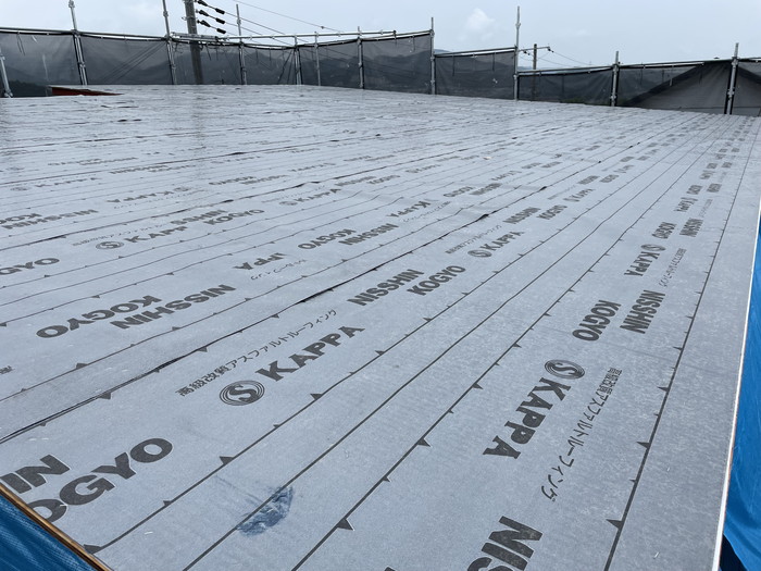 ・屋根の下地の上にアスファルトルーフィングを貼りました。