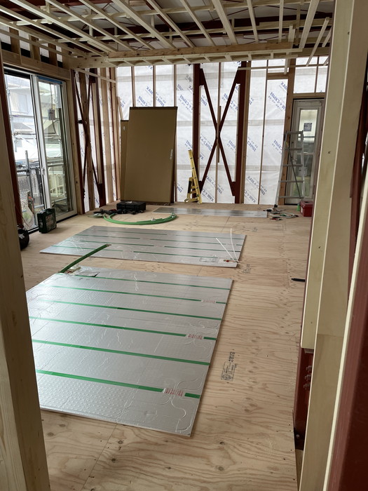 ・内部の造作工事に入りました。床にALCコンクリートを敷いていきます。