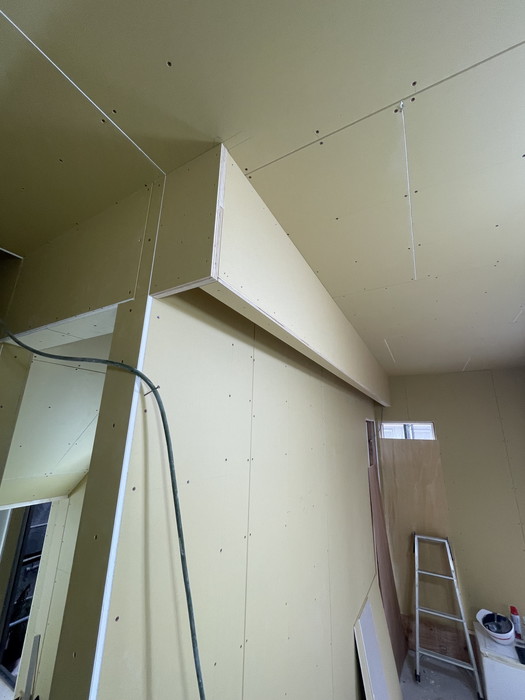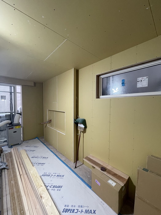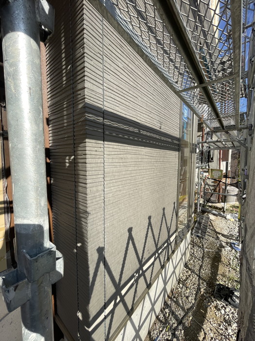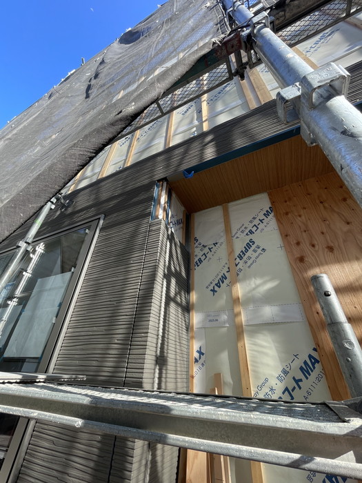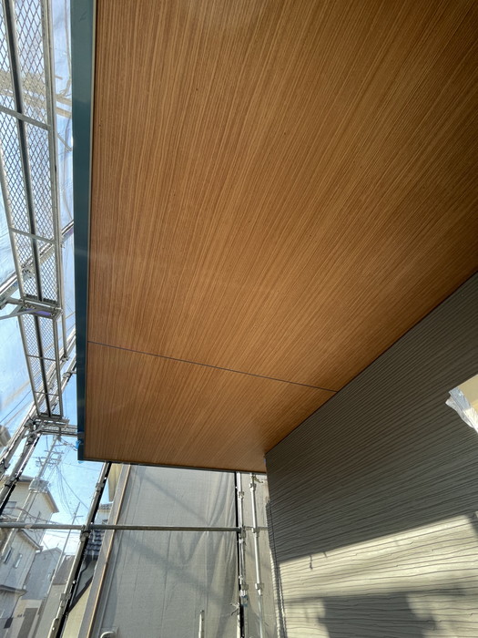 全体の張り付け完了後は、継ぎ目のコーキングと仕上げ作業に入る予定です。