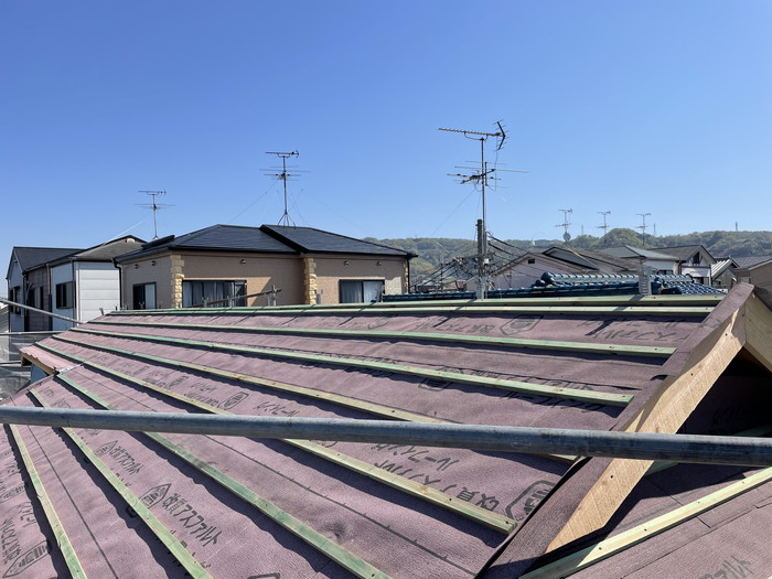 屋根瓦受桟取付施工を行いました。