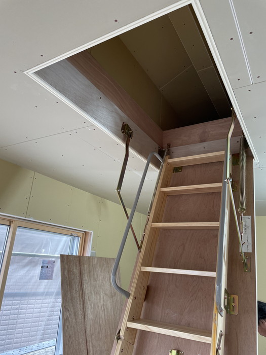 屋根裏収納工事の様子です。