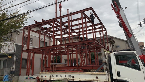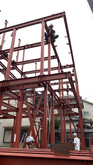 鉄骨建方工事の様子です。