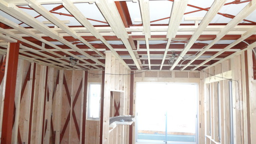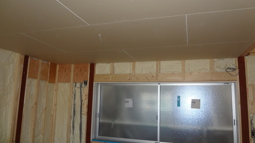 ・天井ボード貼付けの様子です