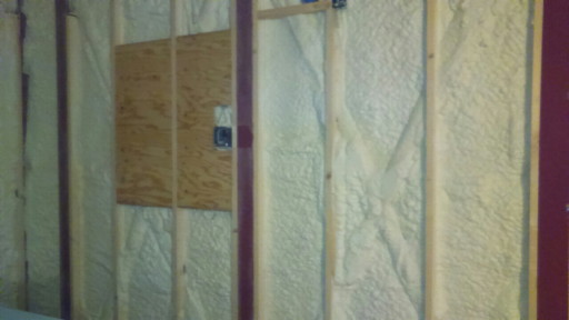 吹付断熱工事をしました。白いモコモコしたものが断熱材で、現場で施工します。