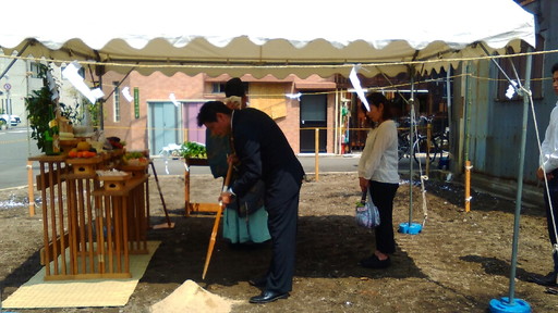 ・神主をお招きし地鎮祭を執り行いました。お供え物をし、祝詞をあげ、お払いをして浄め、初めてその土地に鍬や鋤を入れました。