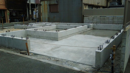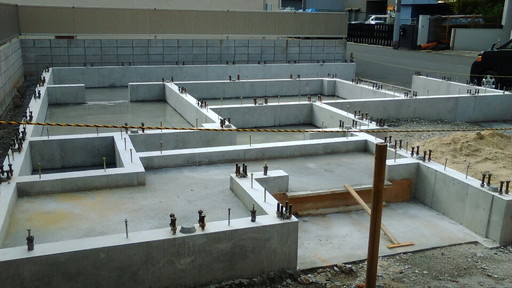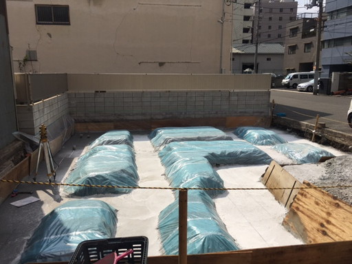・防湿シートを敷き詰めた後に、捨てコンクリート(略して捨てコン)の打設を行いました。