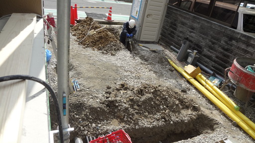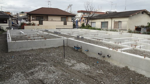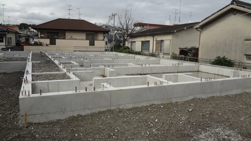 茨木市南春日丘6丁目で2階建てマンションの建築スタート。