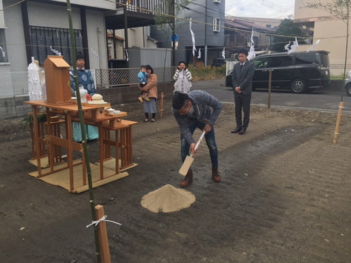 敷地面積31.99坪、延床面積46.96坪の3階建ての工事が始まりました。