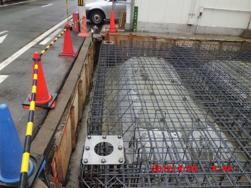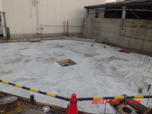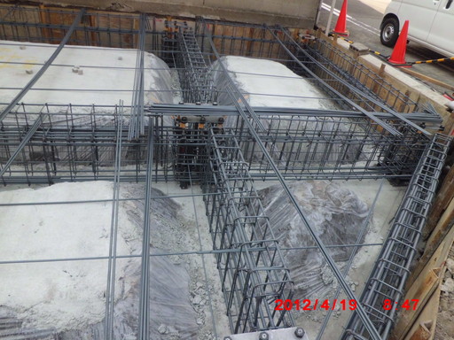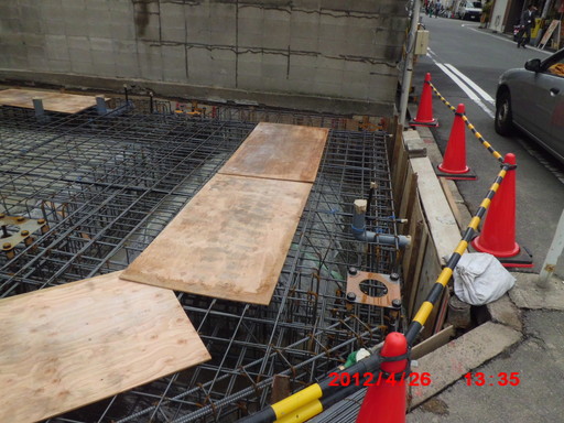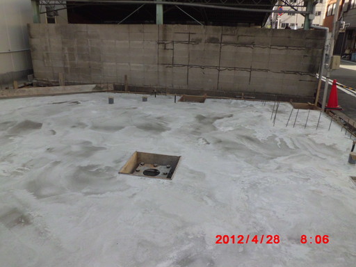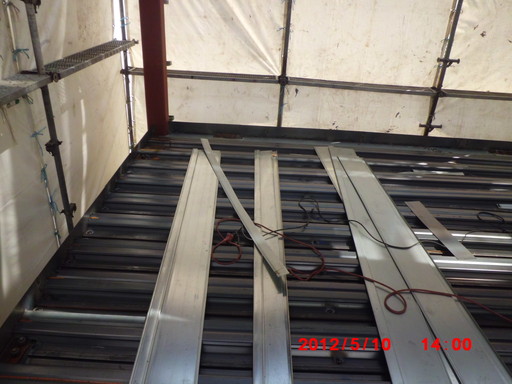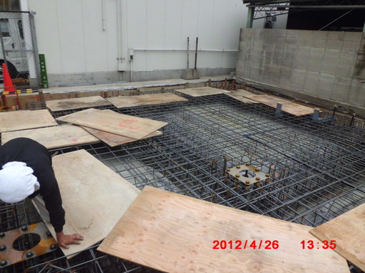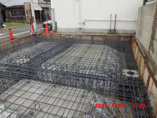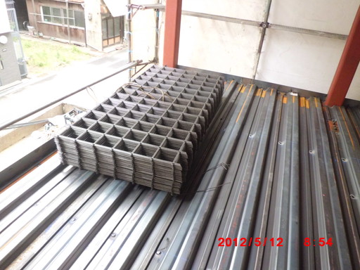 ・2階スラブ、生コン打設後 ・各階、デッキ部メッシュ筋