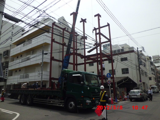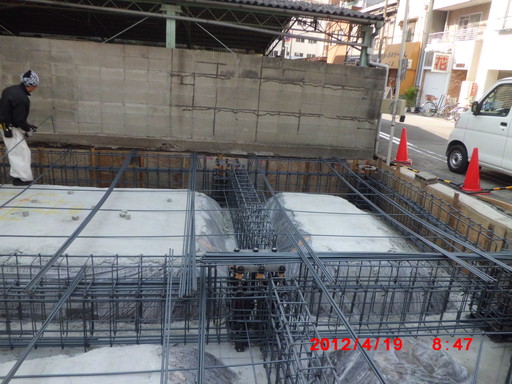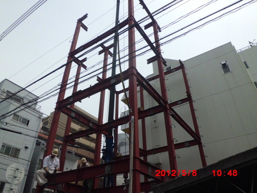 基礎工事、生コン打設、鉄骨建方工事工事を行いました。