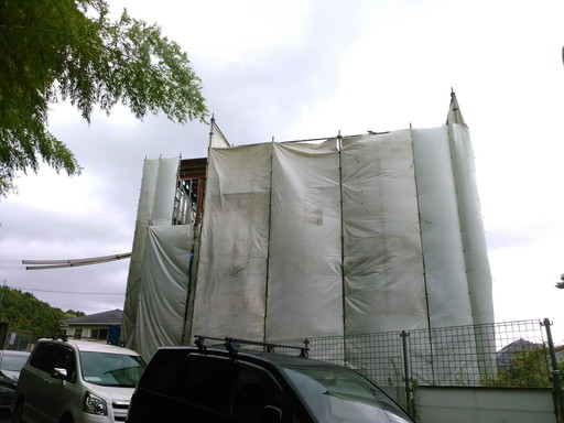 上棟式を行いました。上棟式とは、新築への祝福と神の守護に感謝を示し、同時に無事建設されることを祈願する儀式です。