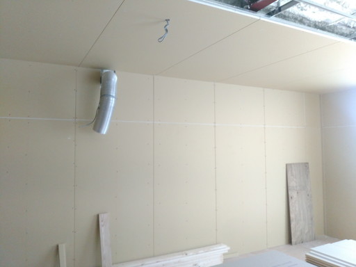 ボードを貼り終えたら、クロスを貼る前にパテ処理をします。
