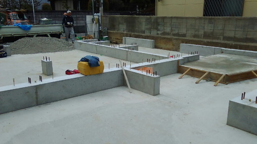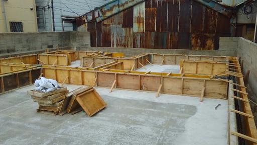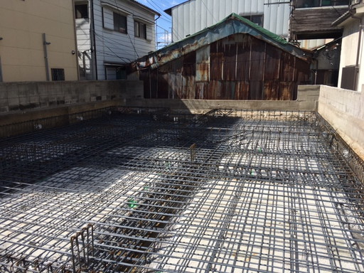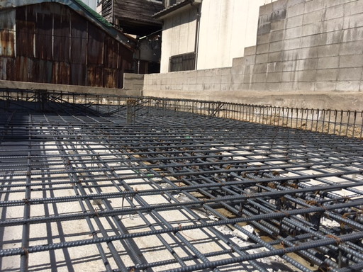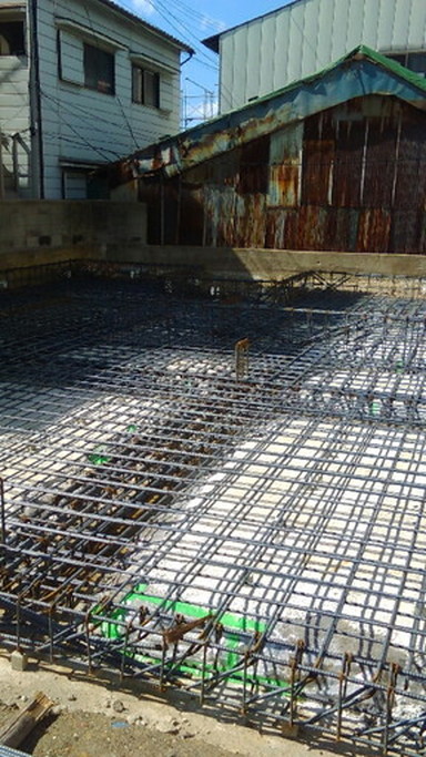 基礎配筋工事とは鉄筋を格子状に組んでいく工事で、こちらが基礎コンクリートの骨組みとなります。