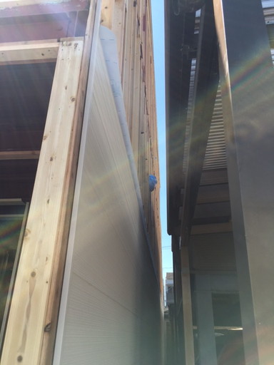 大工工事の様子です。内部の壁やサッシまわり、天井の木部分を施工しました。