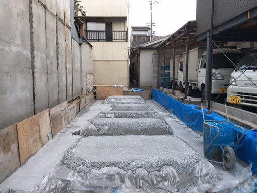 敷地面積23.68坪、延床面積46.21坪の3階建て住宅の工事が始まりました。