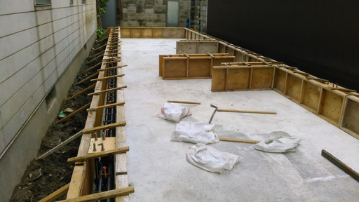 基礎型枠工事をしました。この後、コンクリートを流し込みます。