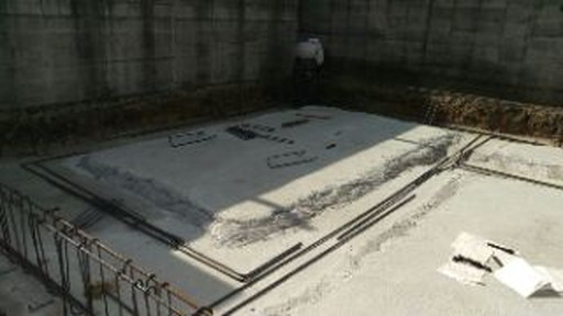 防湿シートを敷き詰めた後に、捨てコンクリート(略して捨コン)の打設を行いました。