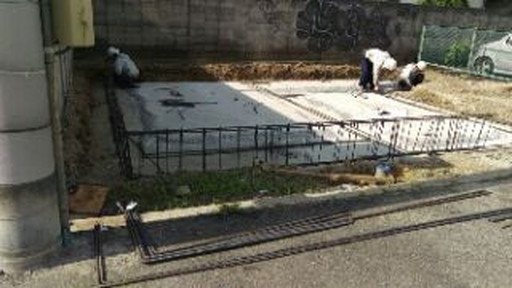 ・鉄筋を格子状に組んでいきます。この作業を配筋と言います。