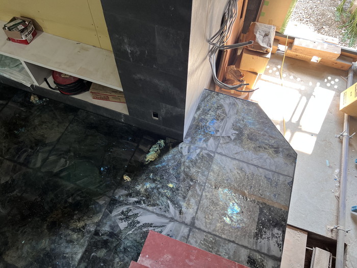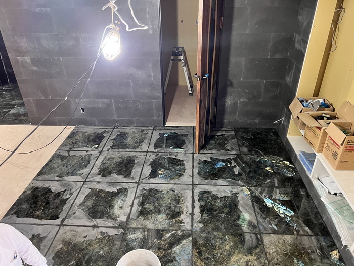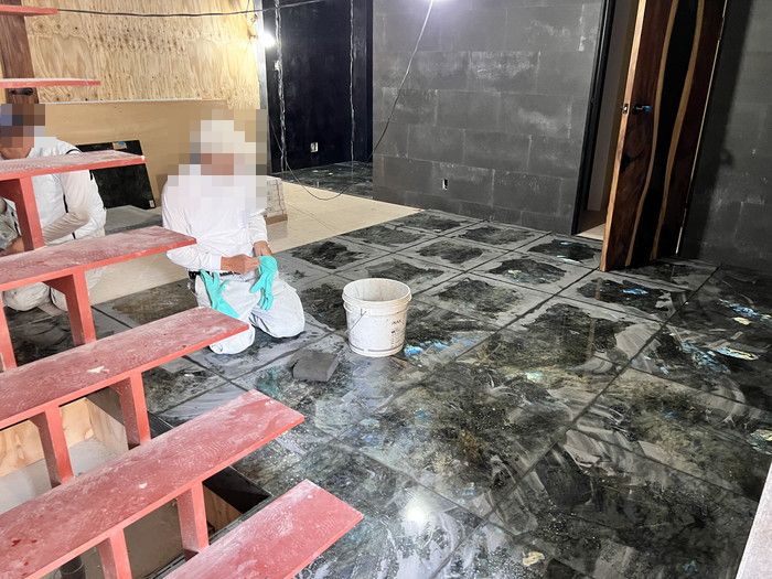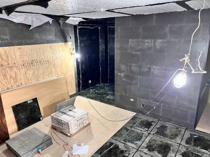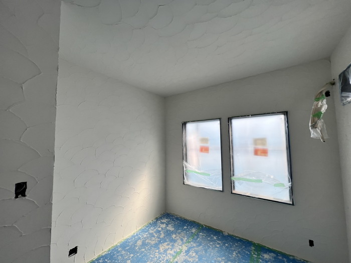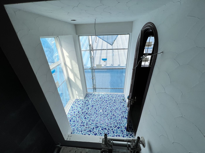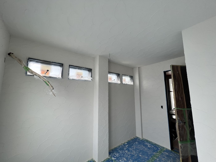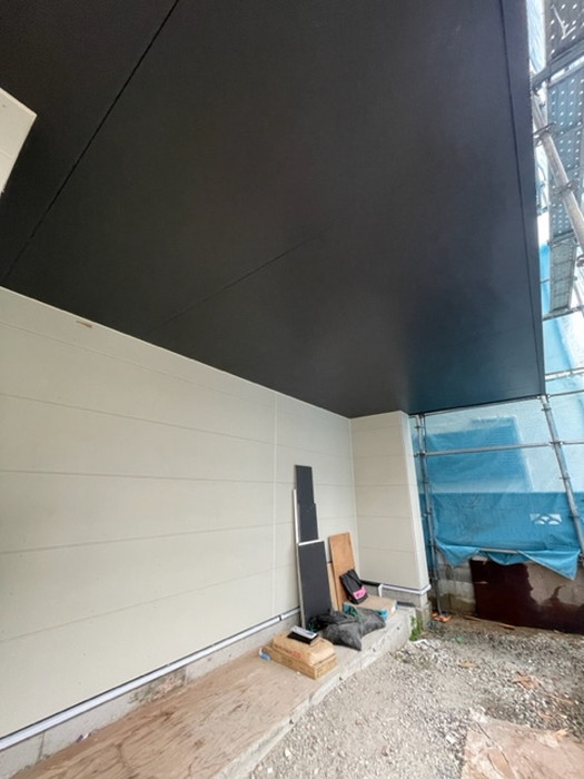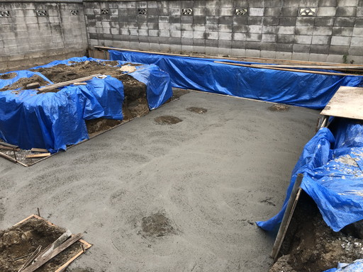 防湿シートを敷き詰めた後に、捨てコンクリート(略して捨てコン)の打設を行いました。