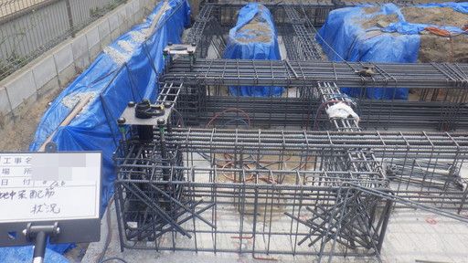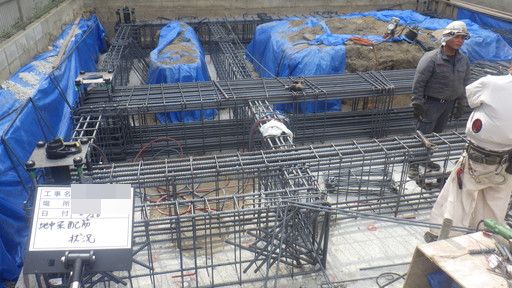 基礎配筋工事を行いました。べた基礎のダブル配筋になっていますので、とても丈夫です。
